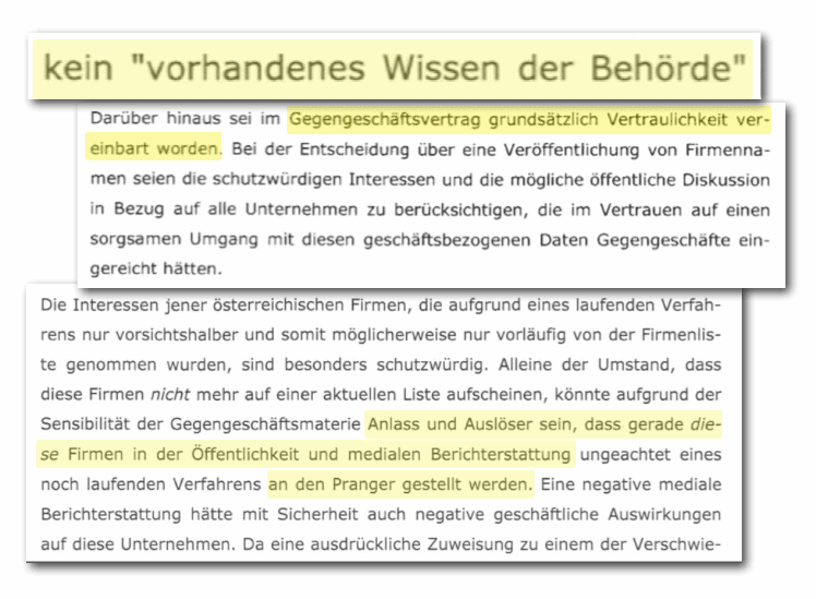 In der Begründung des Wirtschaftsministeriums heißt es dann drittens weiter: Die Interessen der Firmen wären besonders schutzwürdig, sie könnten schließlich in der Öffentlichkeit an den Pranger gestellt werden.