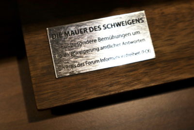 Die Bürgerrechtsorganisation vergibt den jährlichen Amtsgeheimnis-Award „Die Mauer des Schweigens“ für besondere Bemühungen um die Verweigerung amtlicher Antworten und die Geheimhaltung von Informationen öffentlichen Interesses vor den Bürgerinnen und Bürgern.