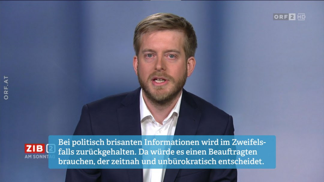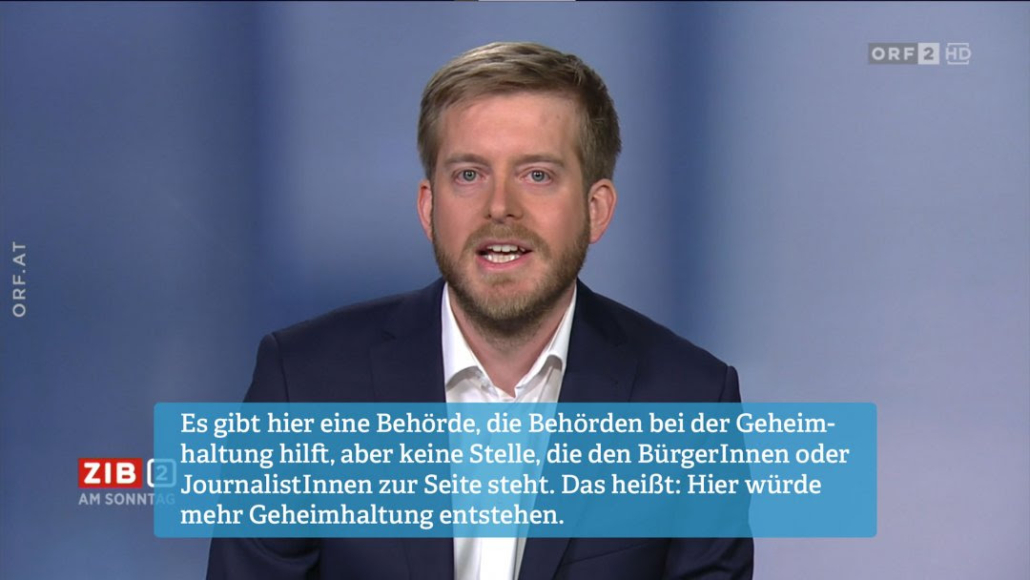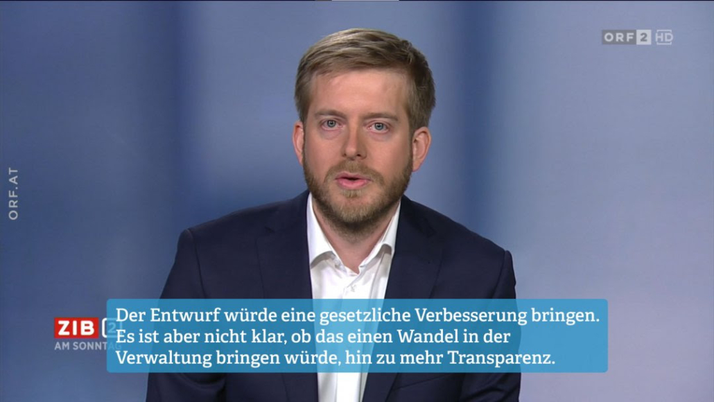 Vergangene Woche ist der Entwurf für ein Informationsfreiheitsgesetz in Begutachtung gegangen. Am Sonntag war unser Vorstand Mathias Huter dazu in der “Zeit im Bild 2” bei Martin Thür.