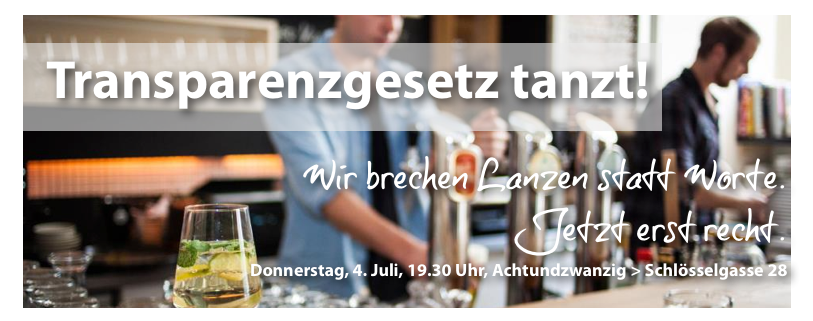 Der 4. Juli hätte ein historischer Tag der Bürgerrechte werden können, an diesem Tag hätte die Regierung die Verfassungsbestimmung ins Parlament – wie einst versprochen – bringen sollen – und tut’s nun doch nicht. Dem konnten wir nur mein einem desmonstrativen Protesfest begegnen: “Transparenzgesetz.at tanzt – Wir brechen Lanzen statt Worte!” versammelte mehr als 100 Unterstüzerinnen und Unterstützer.
