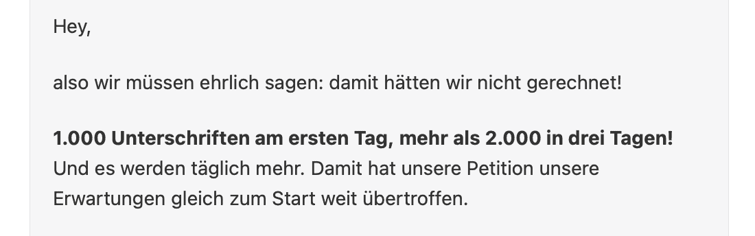 Was ließen sie sich dafür bejubeln. Weil oft das erzählte reicht. Für uns zählt aber das Erreichte.